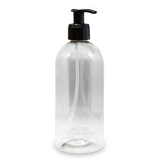 • Spenderflasche klar, 500 ml Fassungsvermögen, leer mit schwarzer Dosierpumpe