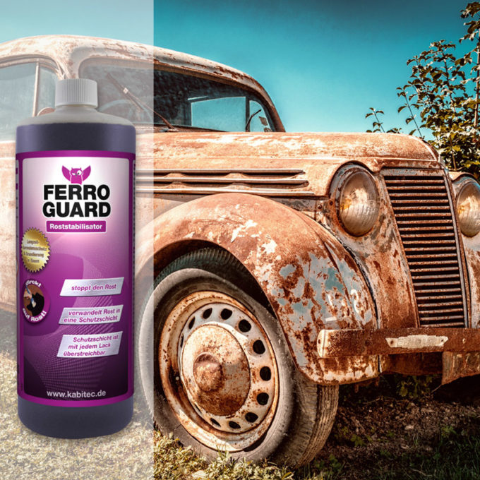 FERRO GUARD Roststabilisator verwandelt vorhandenen Rost in eine widerstandsfähige schwarze Schutzschicht, die das Eindringen von Sauerstoff und Feuchtigkeit verhindert und dadurch ein Weiterrosten unterbindet.